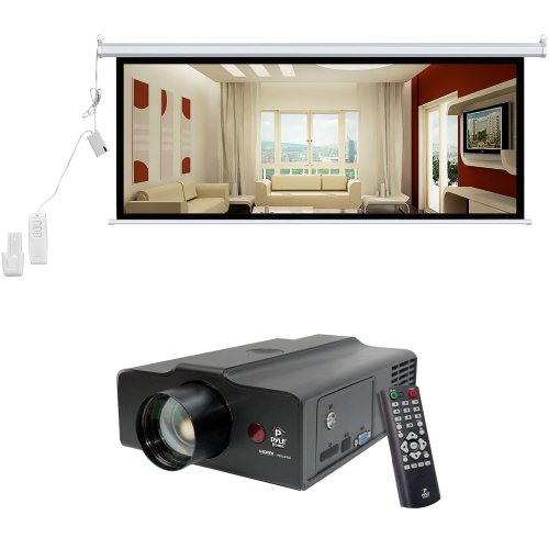 The PRJLE60 runs at 640x480 and uses hi-lumens LED lighting to render your image in gorgeous, crystal-clear color. It supports a wide variety of video inputs, including s-video, VGA, and composite -- so it's perfect for the on-the-go presentation or a small home theater system. Supports screens from 50 to 100 inches. In addition we have also added the Pyle PRJSER1696 Screen. This 16:9 projector screen from Pyle is perfect for watching movies, playing epic video games, and hooking up to your computer. Manual operation of this screen is easy -- simply pull down to reveal the screen, then pull up to hide again. Black masking borders frame the image and enhance perceived video quality. This screen comes in matte white, the most versatile screen surface and the best choice when ambient light is controllable. It evenly distributes light over a wide viewing area while colors remain bright and life-like, with no shifts in hue. Watch visual entertainment with theater-like clarity and quality in the comfort of your home with Pyle projector screens. Product Dimensions: PRJSER1696 - 3.15'' X 4.72'' X 79.92''