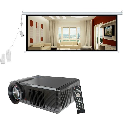 The PRJLE33 runs at a native resolution of 800x600 and uses an internal 5" TFT LCD to render your image in gorgeous, crystal-clear color. Two HDMI ports and support for video up to 1080p means this projector is ready for modern Blu-Ray players, video game consoles, and laptop computers with digital output. Suitable for projector screens from 60 to 100 inches. In addition we have also added the Pyle PRJSER1696 Screen. This 16:9 projector screen from Pyle is perfect for watching movies, playing epic video games, and hooking up to your computer. Manual operation of this screen is easy -- simply pull down to reveal the screen, then pull up to hide again. Black masking borders frame the image and enhance perceived video quality. This screen comes in matte white, the most versatile screen surface and the best choice when ambient light is controllable. It evenly distributes light over a wide viewing area while colors remain bright and life-like, with no shifts in hue. Watch visual entertainment with theater-like clarity and quality in the comfort of your home with Pyle projector screens. Product Dimensions: PRJSER1696 - Housing size: 3.15'' X 4.72'' X 79.92''