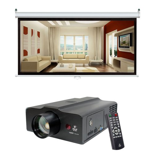 Pyle Video Projector and Screen Package - PRJLE60 Portable LED Projector for Gaming TV Shows Movies and Sports at Up To 100 Inches - PRJS1680 80'' (39''Hx69''W) Manual C Widescreen Format(16:9) Screen - For Home, School, Office, Business, Meetings and Presentations etc.