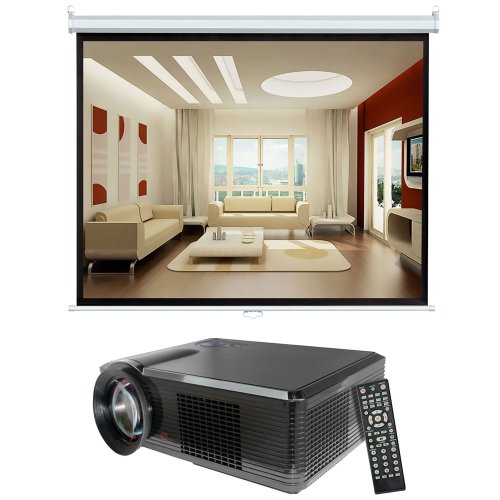 Pyle Video Projector and Screen Package - PRJLE33 Portable LED Projector for Gaming TV Shows Movies and Sports at Up To 100 Inches / Supports HD Input - PRJSL100 100'' (60''Hx80''W) Manual Self Locking Projector Standard Format (4:3) Screen - For Home, School, Office, Business, Meetings and Presentations etc.