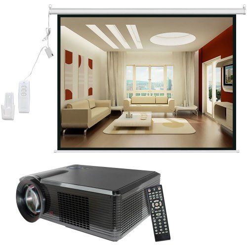 Pyle Video Projector and Screen Package - PRJLE33 Portable LED Projector for Gaming TV Shows Movies and Sports at Up To 100 Inches / Supports HD Input - PRJSER1410 100'' (60''Hx80''W) Motorized w/Wireless Remote Projector Standard Format (4:3) Screen - For Home, School, Office, Business, Meetings and Presentations etc.